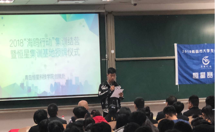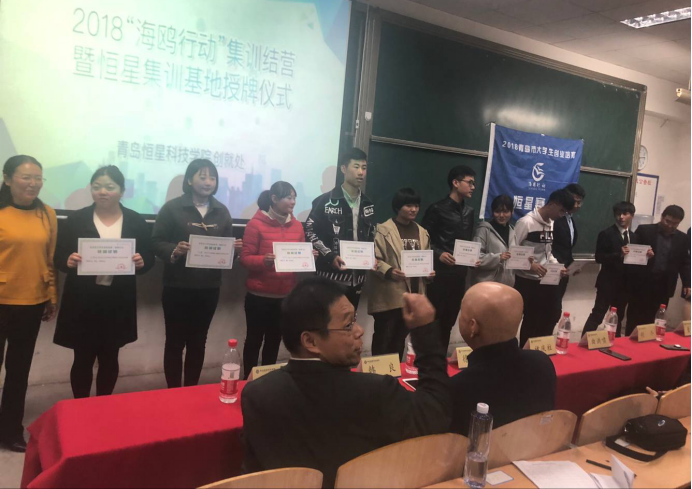 2018年11月7日在信息学院408教室举行了“海鸥行动”集训结营暨恒星集训基地授牌仪式。青岛市大学生创业服务中心主任褚庆柱主任、青岛市大学生创业服务中心副科长胡乔科长、青岛恒星科技学院校长助理韩良助理、创就处处长贾健处长、创就处创新主管迟凯主管以及相关领导出席授牌仪式。