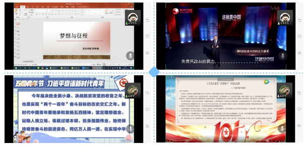 第二节是由尉粮苹老师主讲的关于《传承延安精神,践行科学发展》的主题,讲到了今年是决胜全面小、决战脱贫攻坚的收官之年,也是实现“两个一百年”奋斗目标的历史交汇之年,作为中国新青年的我们要继承和发扬五四精神,坚定理想和信念。