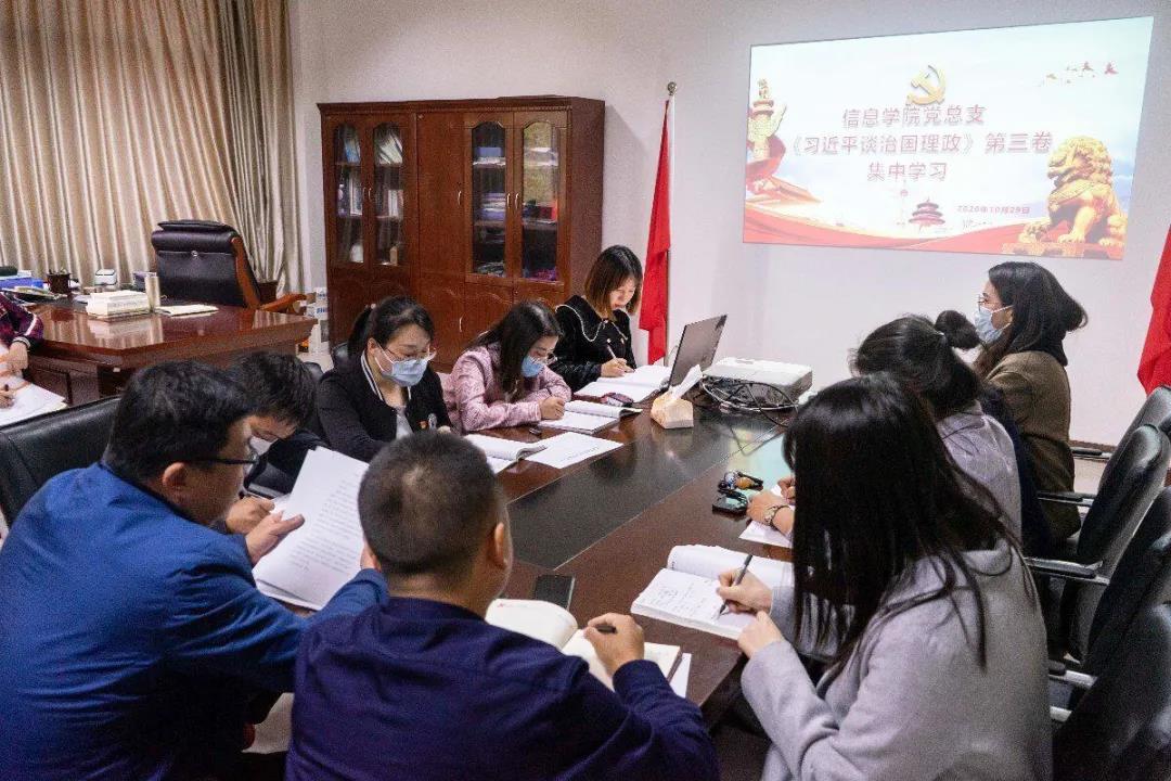 各党员同志同时表示,要将《习近平谈治国理政》第三卷与第一、二卷作为整体,纳入信息学院党总支理论学习中心学习计划,要联系实际、深入学习,进一步增进对“中国共产党为什么‘能’、马克思主义为什么‘行’、中国特色社会主义为什么‘好’”的认识和理解,坚定马克思主义信仰,坚定中国特色社会主义信念,坚定对以习近平同志为核心的党中央的信赖。要武装头脑、指导实践,持续推进习近平新时代中国特色社会主义思想学深悟透、入脑入心,系统掌握和善于运用贯穿其中的立场、观点和方法,拨开迷雾、把准方向、寻找出路,始终保持清醒头脑和政治定力,以实际出发,在教育事业上不断努力探索,为育人成才而奋斗。