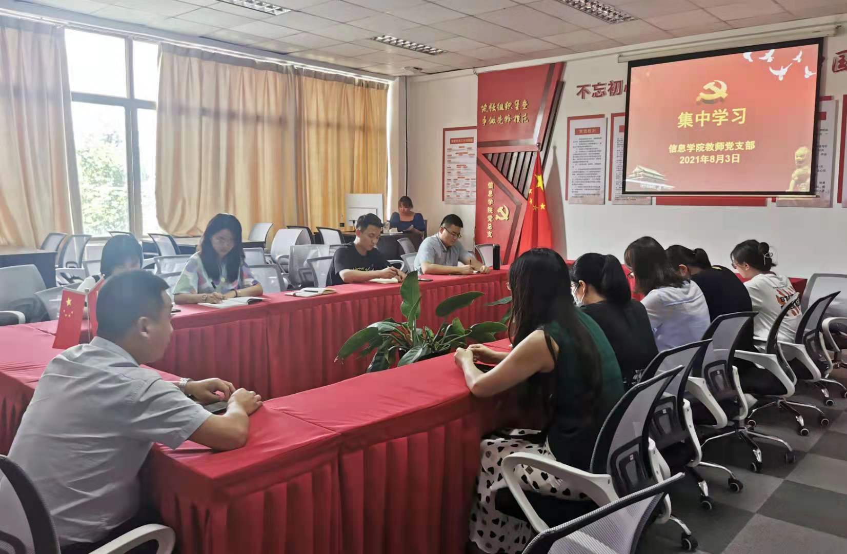 他强调,全体师生要认真学习好中国共产党的百年奋斗史,在历史经验中启迪智慧、砥砺品格,要从历史中寻找光辉的足迹,牢记初心使命,做到学史明理、学史增信、学史崇德、学史力行,在“十四五”的开局之年,开好局,起好步,以总书记对广西的重要讲话和重要指示精神为指引,共同建设好信息学院,以优异成绩庆祝建党一百周年。