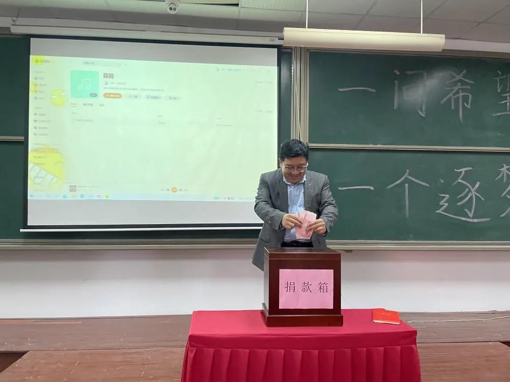 随后左军院长宣布希望小屋爱心捐赠仪式正式开始,由韩伟书记带领大家进行捐款,各位领导、老师、学生代表积极捐赠自己的爱心,为希望小屋的建设付出了自己的努力。