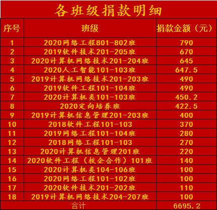 正值中国共产党成立100周年,我校全方位落实团省委工作要求,各级团组织积极响应、自上而下主动发起的“希望小屋”爱心捐赠活动,信息学院全体老师踊跃参与,各班级召开捐赠主题班会,引导各党员、广大青年团员、全体班干发挥模范带头作用,同时联合信息集团各单位,积极参与其中。