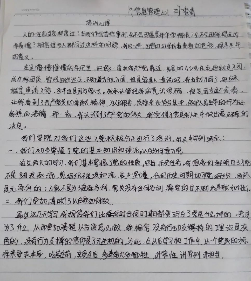 培训班旨在加深入党申请人对党的认识,端正入党动机,坚定入党决心,从思想和行为两个方面严格要求自己,争取早日加入党组织。本次培训有着严格的网络考核制度,确保本次培训达到高标准和高质量的成果,引导广大学员做到思想重视、勤于思考,认真学习相关材料,珍惜此次培训机会,获得最大的收获。坚持用习近平新时代中国共产主义思想武装自己的头脑,不断学习党的理论知识,进一步增强政治意识、大局意识、核心意识,不忘初心,砥砺前行。