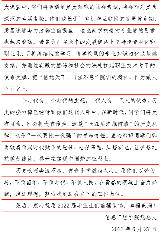信息工程学院党总支成立党员教师志愿服务队和非党员教师志愿服务队,举办毕业“寄”志愿服务活动。