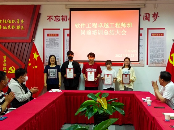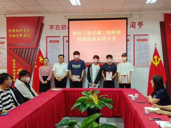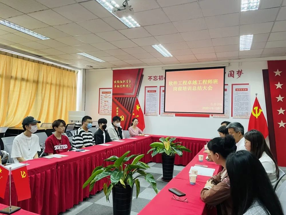 2022年5月23日上午9点,信息学院于A4-305召开软件工程卓越工程师班岗前培训总结大会,参加本次会议的有青岛恒星科技学院副校长张凤东,智信集团副总裁潘娜娜,软创总经理陈占涛,信息学院副院长范敏,信息学院行业院长王晓晴,运营处任俐璇和学社导师李颀。