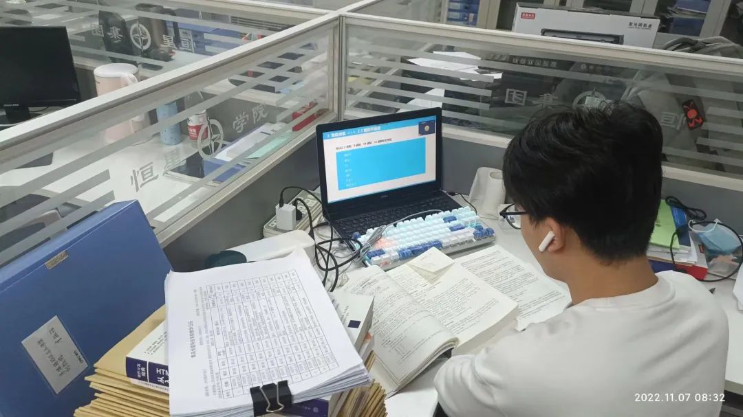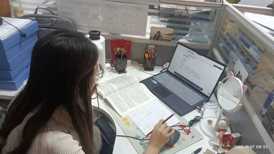 尽管是线上教学,在符合防疫要求的前提下,我校老师仍坚持回校,在办公室进行授课。老师们集中备课,共同研讨,根据线上教学的特点,强化教学环节设计,注重互动交流,充分利用腾讯课堂及学习通的各项功能来调动学生的积极性,切实提升线上教学的实效。居家上课的老师同样坚守在屏幕前为学生传道授业解惑。老师们用爱与责任打造了一节节智慧“云”课堂。