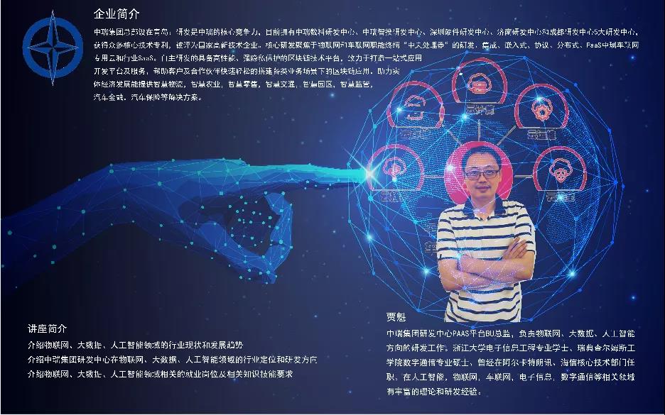 为了深入了解信息行业现状和发展趋势,10月19日下午信息学院邀请中瑞集团研发中心PAAS平台BU总监贾魁为学生做了《物联网大数据人工智能》讲座。讲座于铭志楼A4-404教室举行。