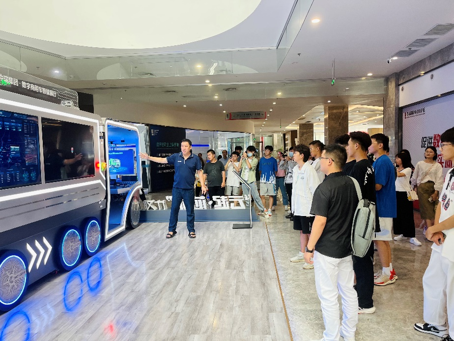随后,同学们在王总的带领下参观了一楼展厅。在一楼展厅中,王总向同学们介绍了青岛中瑞集团的主要业务,同学们了解了包括智慧校园、大数据与云计算平台、智慧农业、智慧出行等多方面的内容。