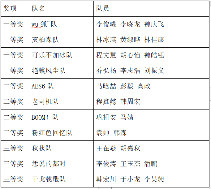 最终,经过激烈的角逐,共有11支队伍获奖,结果如下: