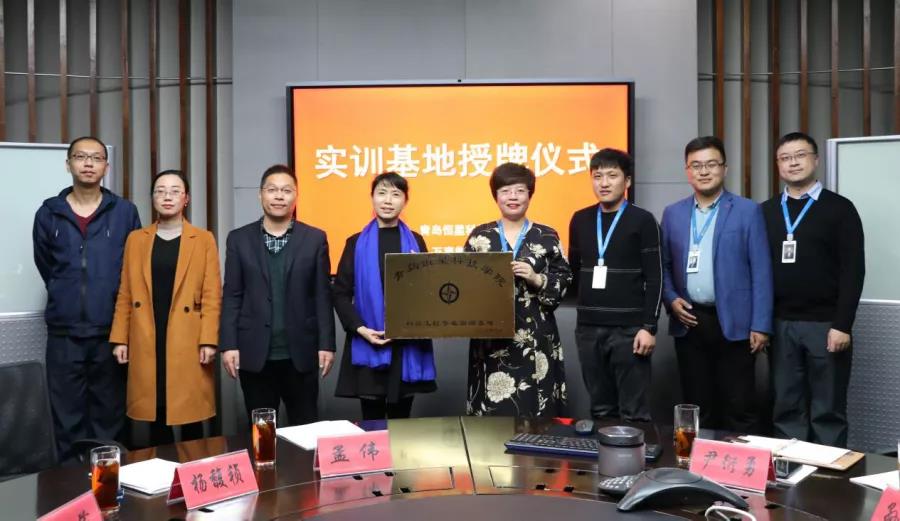 青岛恒星科技学院信息学院与万声集团健康工厂进行了授牌仪式。