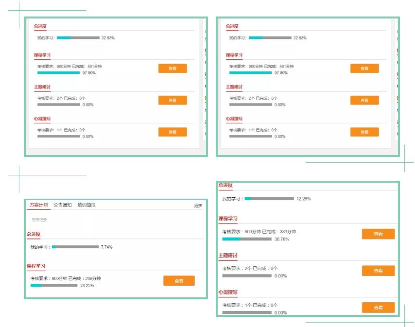 我院辅导员在保质保量完成本职工作的前提下,个人合理利用时间自行参加培训学习,截止培训第一周,我院9名辅导员上周共学习课程3568分钟,平均每人每天学习90分钟以上。此次培训课程六大板块,每位辅导员均有涉及,学习内容包括“价值引领与思想引导”模块中的“让爱国主义旗帜在心中高高飘扬”、“新时代爱国主义教育实施纲要”“新时代青年学生思想有效引领”三个课程。通过观看课程,辅导员们对弘扬爱国主义精神的重要价值、对新时代大学生党员应该如何弘扬爱国精神、对新时代大学生党员在弘扬爱国精神中应该注意的几个重要问题有了更深刻的理解。