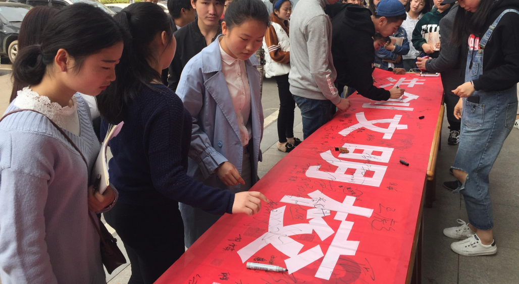 在全院范围内创设“人人讲文明,班班重礼仪”的浓厚氛围,组织信息学院同学开展“共创文明校园,文明礼仪从我做起”签名活动。同学们在横幅上郑重地签上自己的名字,承诺自觉树立当代大学生的良好风范和形象,切实做到六讲、六无(即语言讲文雅,行为讲文明,校园讲秩序,考试讲诚信,人际讲和谐,处事讲真诚;地上无杂物,墙上无污迹,门窗无灰尘,生活无陋习,口中无秽语,行为无违纪)。