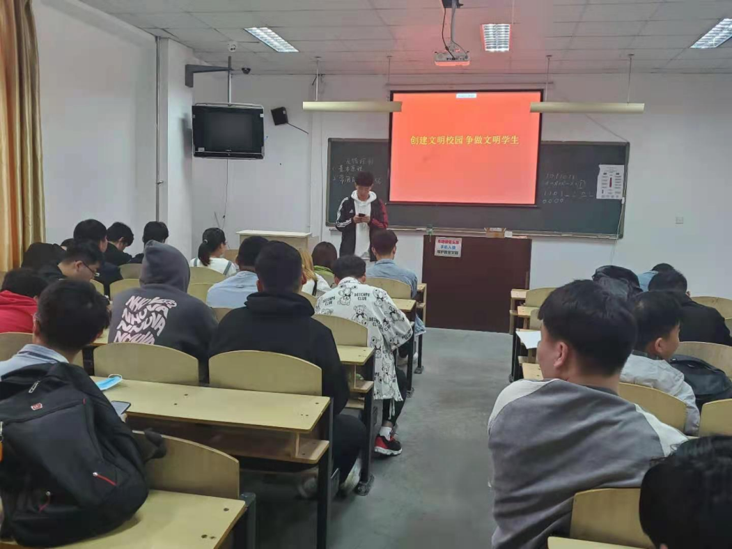 各班通过召开文明礼仪主题班会,使学生懂得遵守社会规范和礼仪道德,建立公平、公正、和谐的社会环境的重要性。养成文明行为习惯,全面提升自身素质,做文明守纪,健康向上的大学生。
