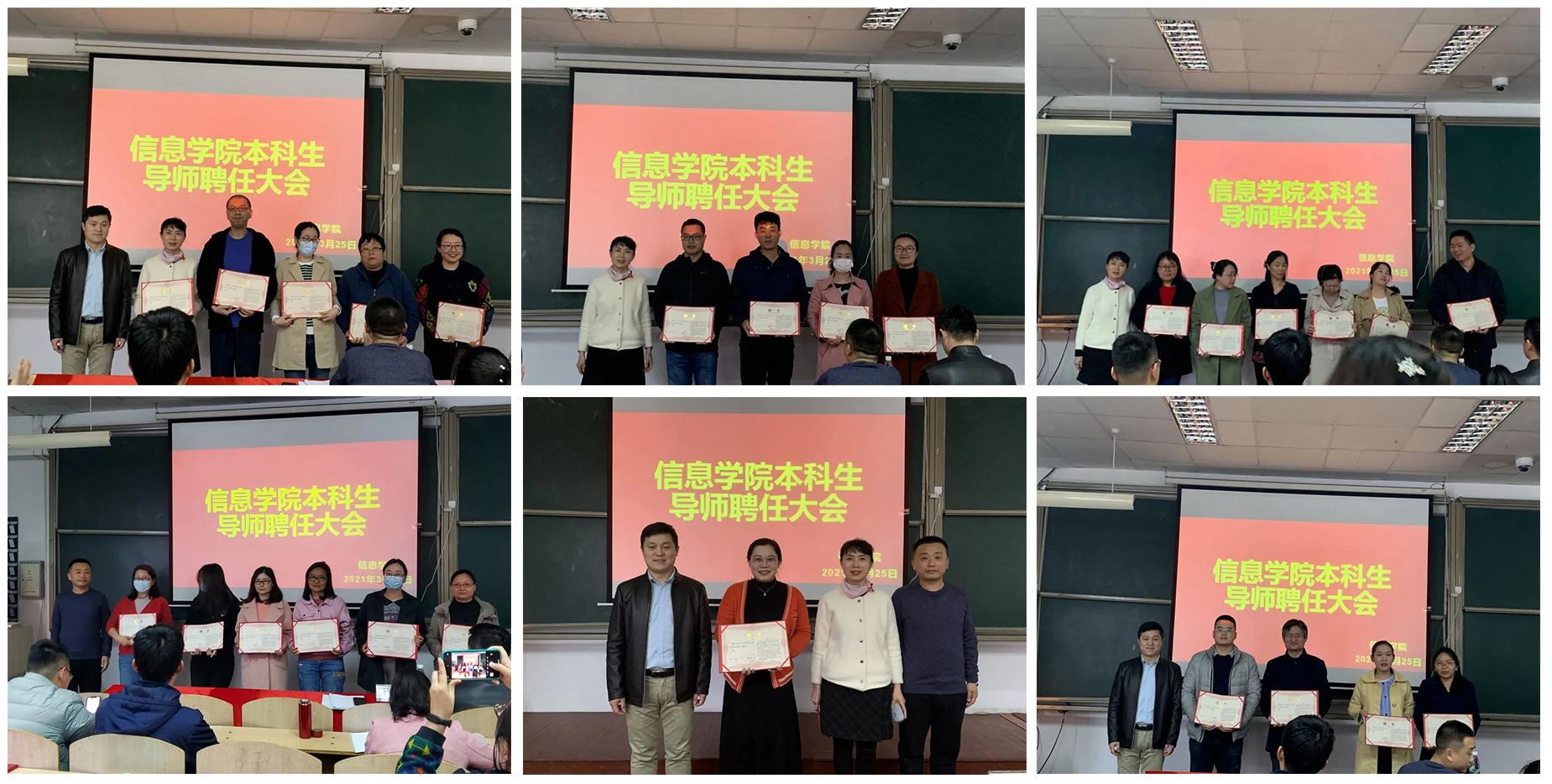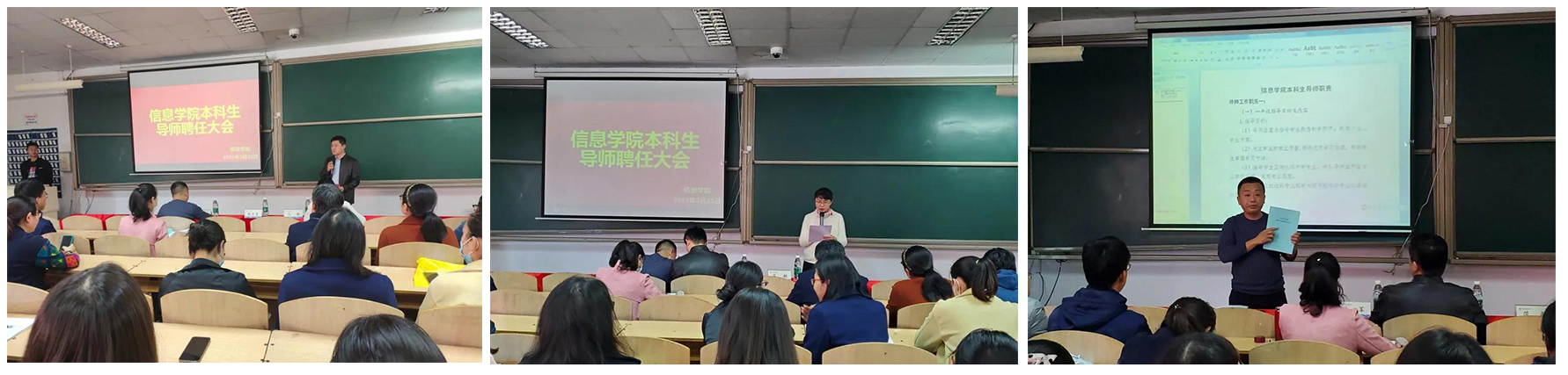 为了满足不同学生多样化发展需要、强化学生的人生规划和发展素养、学业指导与成长指导同步、一体化教育教学管理机制,2021年3月25日下午16点,信息学院在铭志楼(A4)408教室举办了信息学院本科生导师聘任大会,出席本次活动的领导有:信息学院赵院长、副院长范敏、副院长左军。