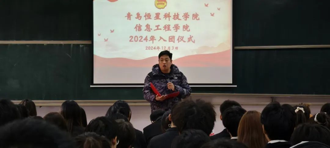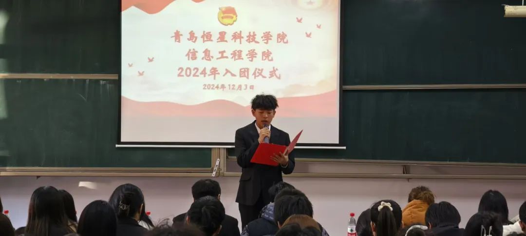 信息工程学院党总支副书记张良进行总结致辞,对新团员提出殷切期望,鼓舞他们在学业、生活等各方面发挥先锋模范作用,为民族复兴努力拼搏。最后,团歌奏响,众人齐声高唱,入团仪式在激昂的旋律中圆满落幕,新团员们自此踏上荣耀的青春新征程,怀揣理想,扬帆起航。
