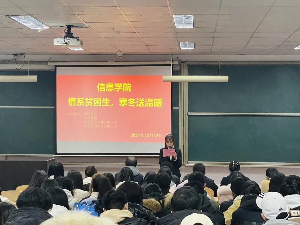本次活动的开展拉近了师生之间的距离,让这个冬日也因爱心的传递变得和煦起来。家庭经济困难学生感受到了物质上的关怀和精神上的慰藉和鼓励,也感受到了信息大家庭的温暖。