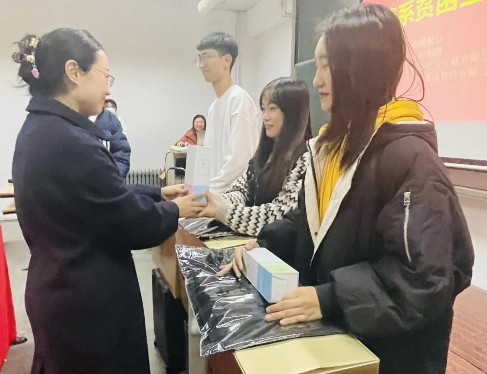 最后,受资助学生代表翟伟业同学发言,他表示,能收到爱心企业和学院送的礼物非常开心、感动,在这个寒冬也倍感温暖。在今后的学习生活中,将饮水思源,常怀感恩之心,刻苦学习、增强本领,用“文明、博学、实践、创新”的校训不断鞭策自己,用实际行动来回报母校和社会。