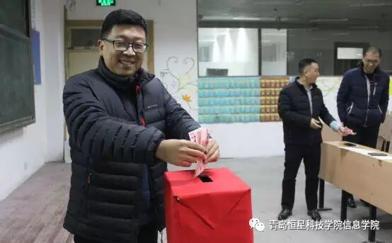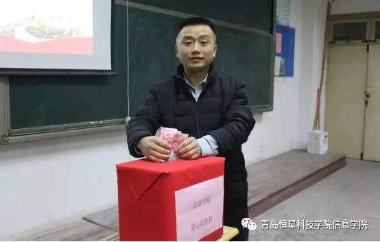 2019年12月27日下午四点于A4平台304教室举行“不忘初心·情系建档立卡学生”活动,此次活动旨在省内贫困的建档立卡同学,青岛恒星科技学院校信息学院党支部书记韩伟书记、副书记左军书记、纪检委员尉粮苹委员以及信息学院全体党员、预备党员、入党积极分子及全体老师参加此次捐款活动。由信息学院党支部副书记左军书记主持本次活动。