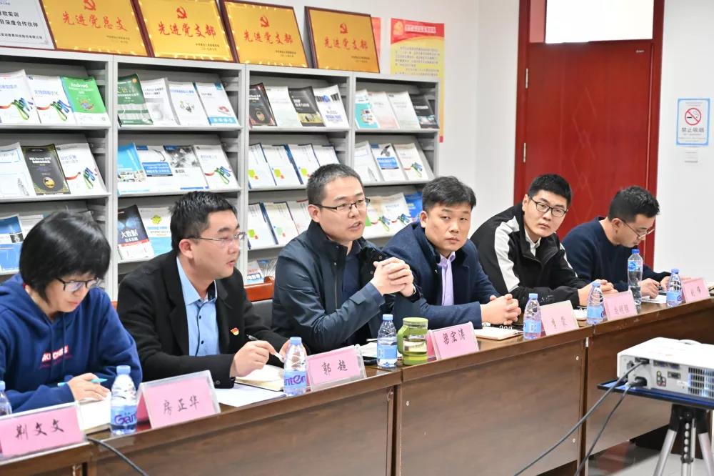 首先青岛恒星科技学院信息学院党总支书记韩伟就党建、校企合作、专业建设、学生竞赛、学生管理工作进行介绍,提出希望共建双方加强沟通协调,密切配合,互通有无、通力合作,扎实推进两院党建与业务深度融合,实现党务与业务同向发力、联动提升,切实将党建愿景规划转变成实实在在的发展效能,使两院各项办学事业生机勃发。