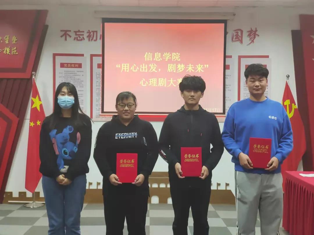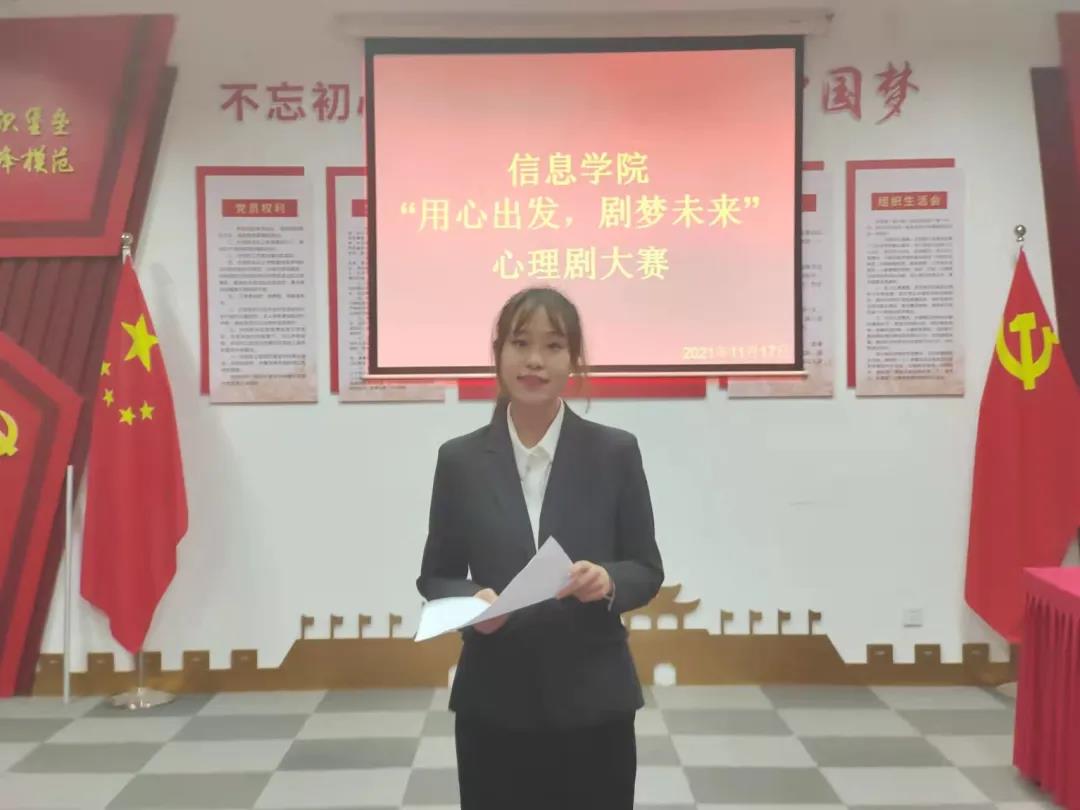 大学生活的每一刻都充满无限的活力,我们因年轻而个性张扬,美好的大学生活同样布满荆棘与坎坷。为了加强大学生的心理健康教育,丰富同学们的课余生活,青岛恒星科技学院信息学院于2021年11月17日下午19:00在近思楼(A4)-305党建办公室举办了“用心出发,剧梦未来”心理剧大赛。
