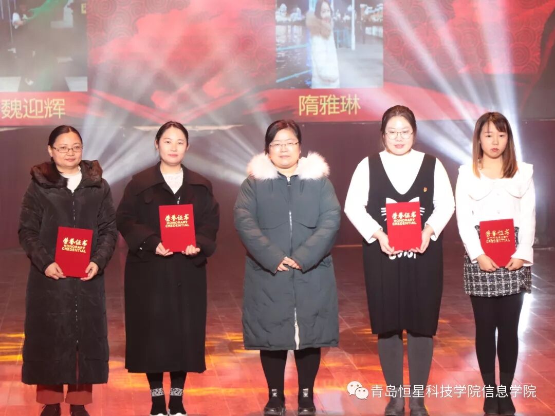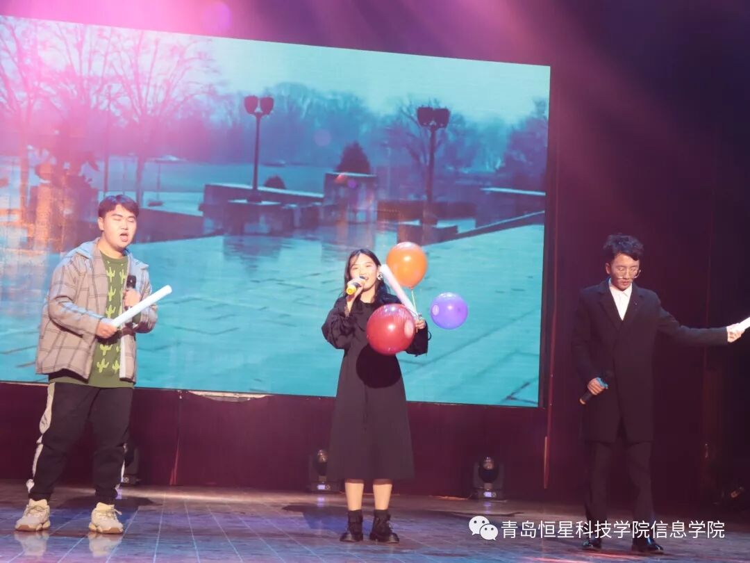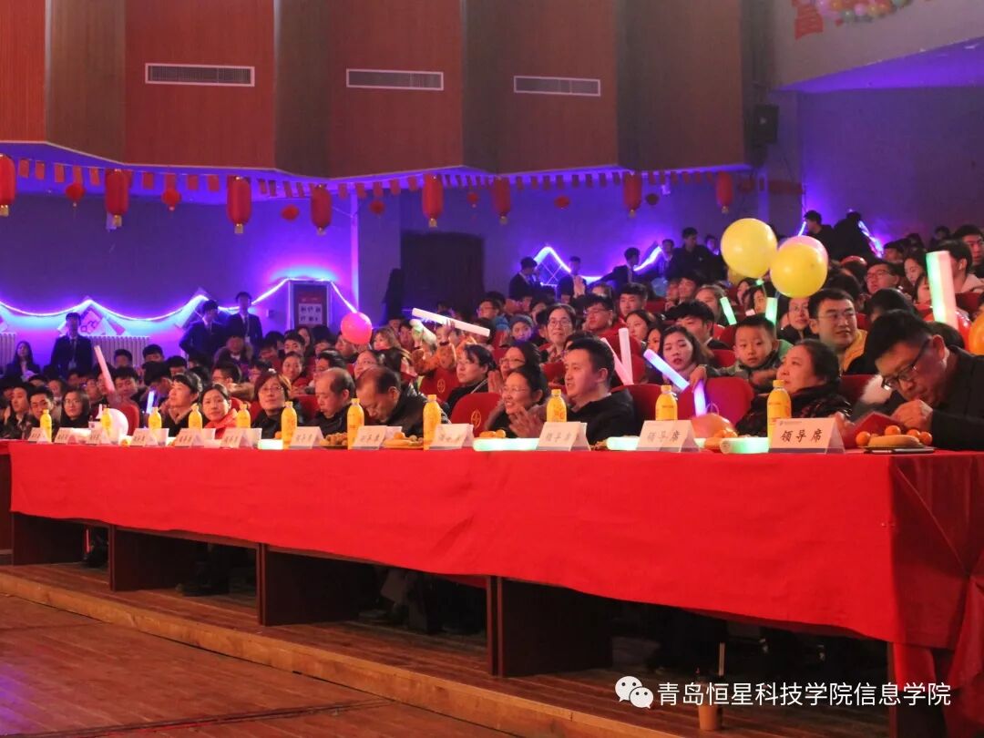 用歌声寄托对青春的深情厚谊,用乐声承诺对梦想的信念永恒。12月24日晚六点,青岛恒星科技学院“逐梦信息青春,点亮科技未来”文艺晚会暨表彰大会在国际交流中心拉开帷幕。出席晚会的领导有青岛恒星科技学院学术校长徐爱民教授、学工校长陈杰校长、党委书记,宣传部部长王立庭书记、评价处处长李云霞处长、校长助理,信息学院总裁韩伟总裁、创就处处长毕晓丽处长、校团委书记隋立欣书记、学生处自律科长庄大伟老师、农学院教学院长张培喜院长、装备学院教学院长潘娜娜院长、教育学院教学院长单菁华院长、信息学院教学院长范敏院长、旅游学院思政院长尚园院长、装备学院思政院长张菲菲院长、信息学院思政院长左军院长、国防科技大学王锐博士。