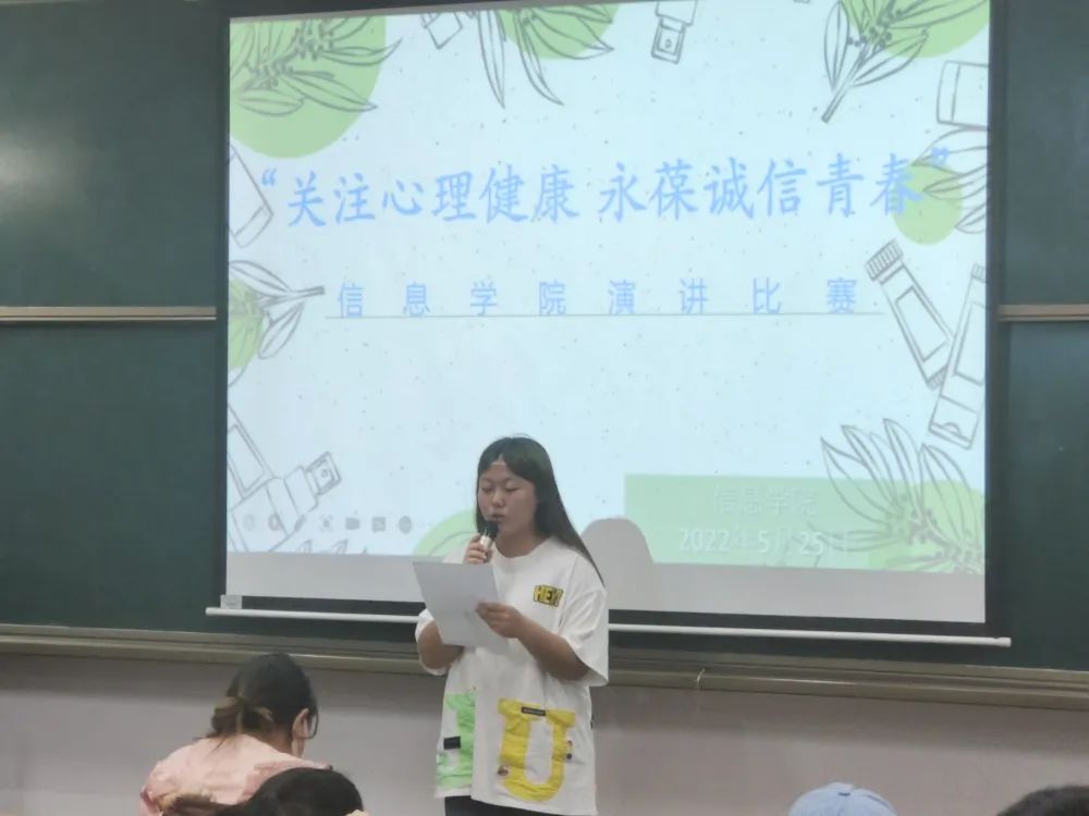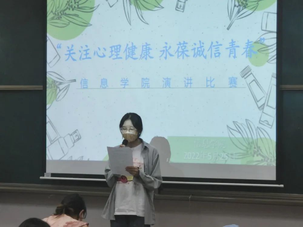 21计算机类105班毛雨轩同学演讲的是:生命最大的意义就是,活出真实的自己。作为一名大学生,我认为首先接受心理健康教育是很有必要的 它使我们明白了我们要爱他人,也应学会爱自己,接受自己的不足与缺点。