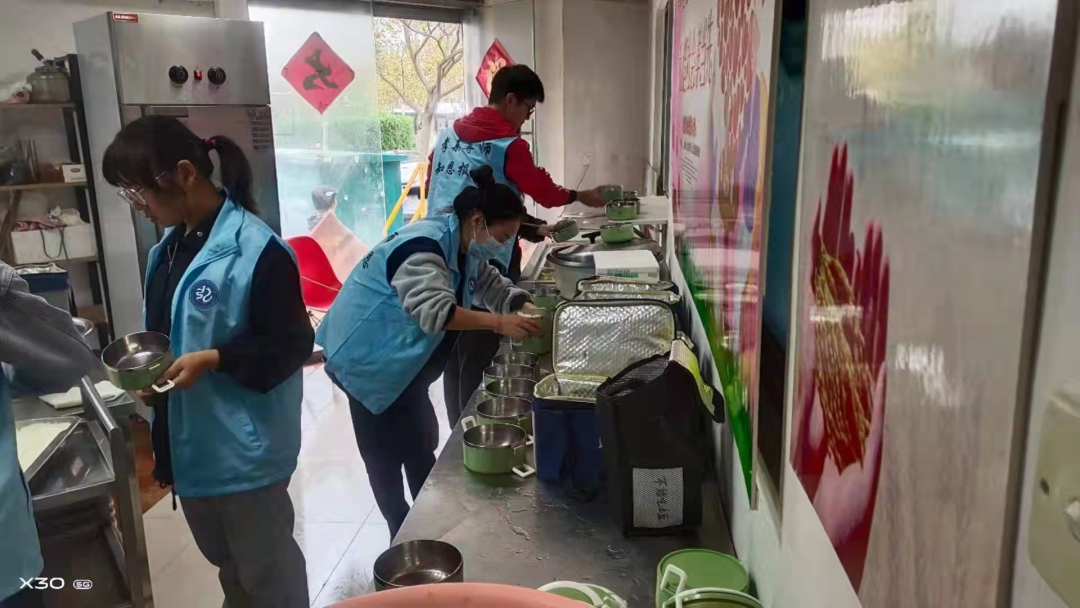 2022年7月吴世豪、王书宁、刘君豪等六名同学赴青年旅社关爱老人社会实践活动,为高龄老人做上一顿中午饭,并为腿脚不便的老人送餐,通过以这种送餐到家的方式,切实帮助独居老人的有效路径。