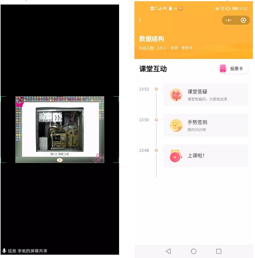 信息学院在第一阶段的教学任务分为8门课程,共由6名教师讲授。这6位老师也是经过了多天材料的准备,在进行多次课前测试、集体备课以及试讲后,成功地抵挡住了网络流量和学生访问数量所带来的冲击,顺利地完成了教学任务。原计划中赵霞、李岩老师将采用雨课堂进行直播,而曹秀平、常来花、杨斌、齐艳丽老师采用智慧树翻转课堂进行教学,如此,这6位老师刚好都有一堂课。