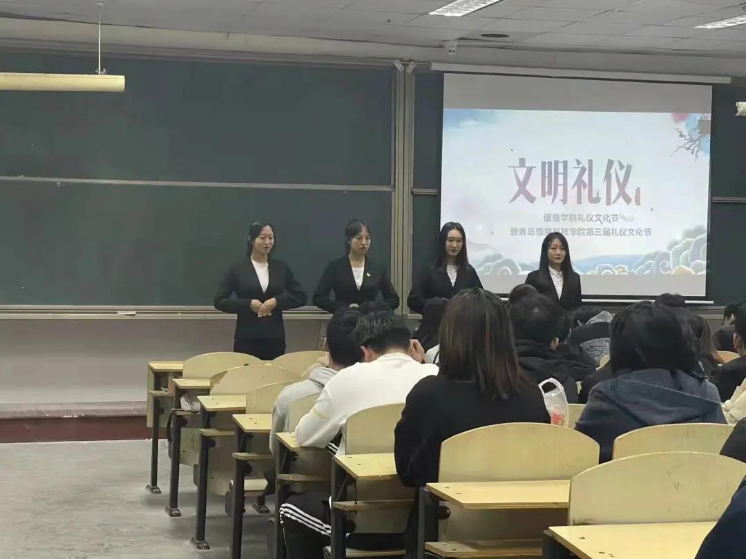 礼仪知识,运用礼仪规范,庆祝青岛恒星科技学院礼仪文化节,同时提高同学们的个人自信和气质,信息学院于11月18日下午19:00点在近思楼A4-506教室举办“文明礼仪”活动。