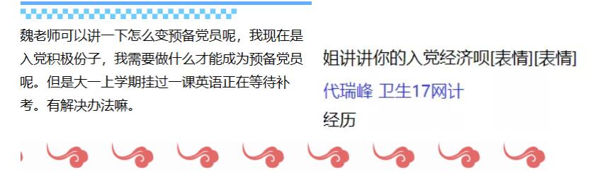 魏老师为让各位学生干部们了解学生入党的流程,就此向我们做了党建培训。对我们进行了入党动机与入党程序的讲解,入党动机分为追求理想型、情感升华型、个人荣誉型、功利实惠型等,所以我们需以健康的心态及动机去加入中国共产党。随后又向我们解说了中国共产党的责任担当与精神。