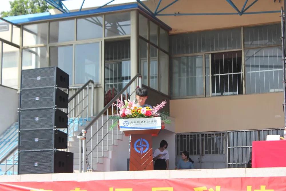 最后由青岛恒星科技学院校长陈昌金博士讲话,今年是反法西斯斗争75周年,未来还是要靠各位青年的。习总书记说过“广大青年要坚定理想信念,志存高远,脚踏实地,勇做时代的弄潮儿,在实现中国梦的生动实践中放飞青春梦想,在为人民利益的不懈奋斗中书写人生华章。”希望各位同学要有为理想目标奋斗的决心,努力成为习总书记讲述的新一代青年。他强调,在座的学生,要认识自我,要有一个明确的方向,勤奋学习、培养习惯,做一个对家庭、对社会有用的人。
