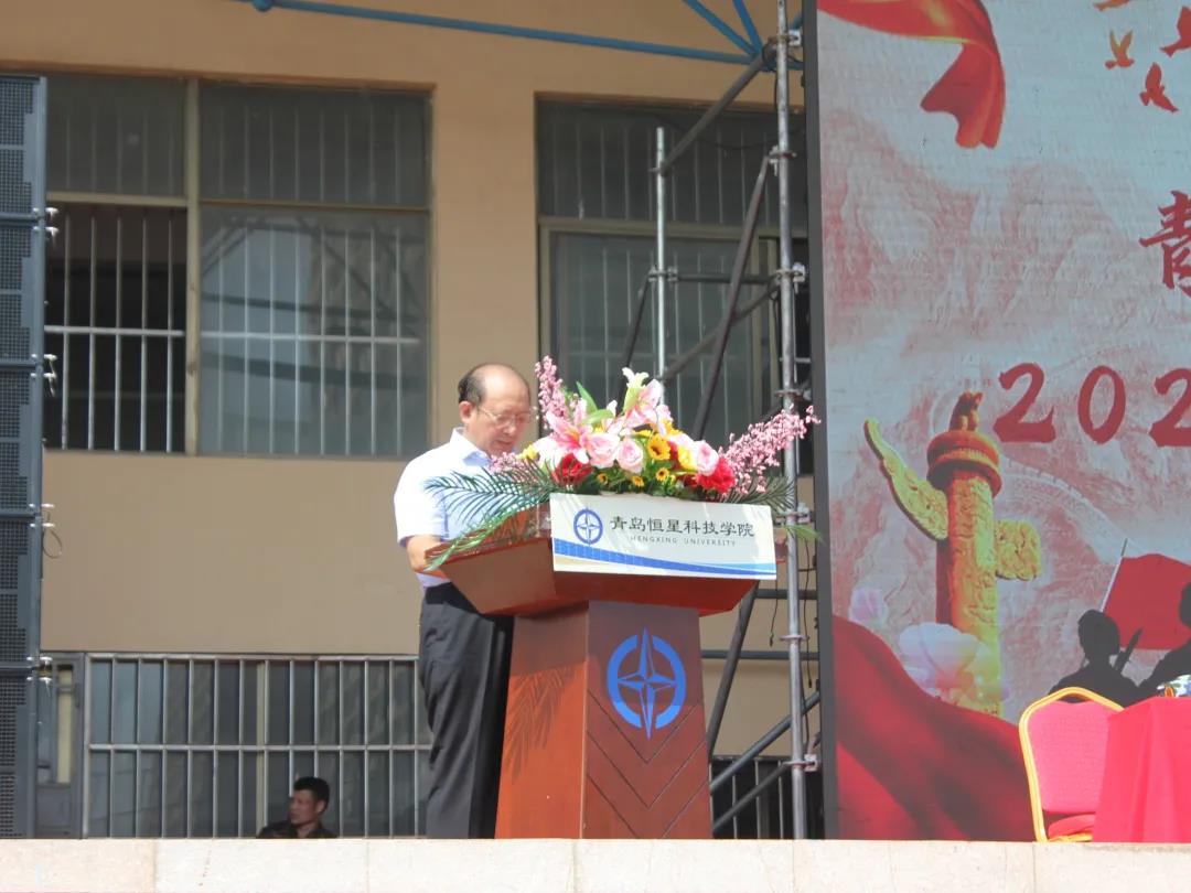 九月的山东依旧骄阳似火,灼烧着每一寸土地,为积极响应国家关于大学生接受国防军事号召、培养新生拼搏吃苦的意志品质和自主管理意识,养成养好的学风和生活作风。9月6日上午9点,在嘹亮的国歌声中,新生军训正式开始。参加本次动员大会的领导有恒星集团董事局主席、青岛恒星科技学院校长陈昌金;青岛恒星科技学院党委书记纪德臻;青岛恒星科技学院执行校长徐爱民;青岛恒星科技学院学工校长陈杰;青岛恒星科技学院副校长严以刚;青岛恒星科技学院校长助理韩伟;青岛恒星科技学院校长助理赵晶晶;青岛恒星科技学院学生处处长毕晓丽;青岛恒星科技学院保卫处处长王立勋;学生处副处长房坤。此次大会由我校党委副书记王立庭主持。