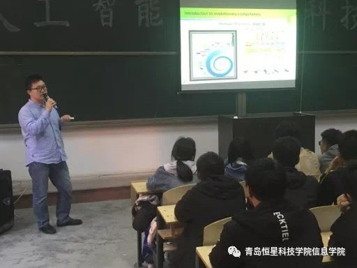 近年来,随着人工智能技术不断在各行各业中得到广泛应用,AI对人类社会的影响可谓是方方面面。从最初的科学数学计算演变到现代的各种计算机应用领域,比如多媒体应用、计算机辅助设计、自动控制等。为了使当代大学生更加了解人工智能,10月29日下午四点,青岛恒星科技学院信息学院特邀国防科技大学教授、湖南省杰出青年、中国仿真学会智能仿真与调度专委会秘书长王锐教授在A4 304教室举行了一场关于人工智能的科技讲座。信息学院19级本科班和农学院全体同学到场学习此次科技讲座。