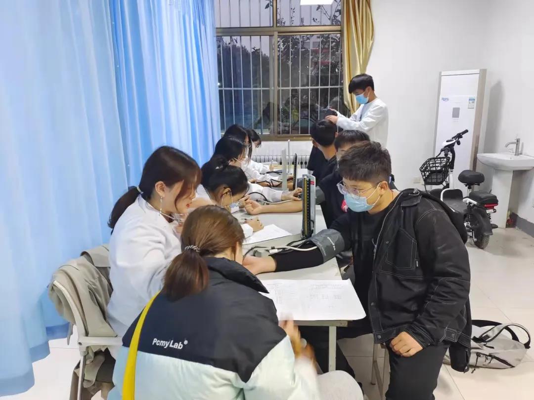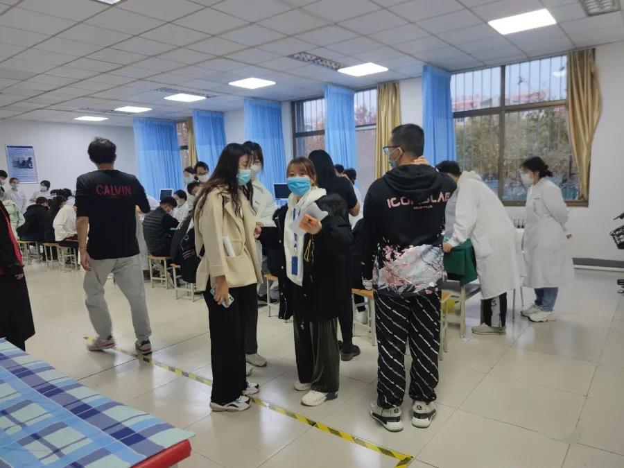 我院学生在老师和学干的指引下,按照防疫要求佩戴口罩,间隔一米排队进行,整体体检过程井然有序。医护人员也都耐心的为同学们抽血化验以及做一系列健康检查。