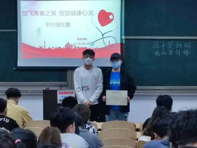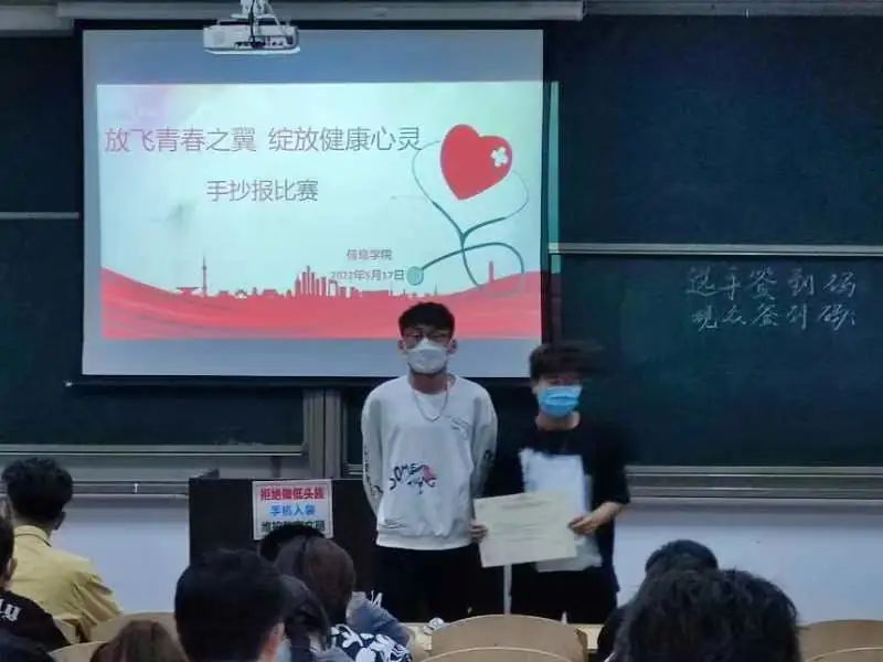 为了丰富同学们的校园生活,活跃校园气氛,提升我院学生的心理素质和个人身心健康修养,改善大学生的社会心理环境,提高青年学生的综合素质,青岛恒星科技学院信息学院特在2022年5月17日下午19:00于铭志楼a4-304教室举办“放飞青春之翼,绽放健康心灵”手抄报比赛。