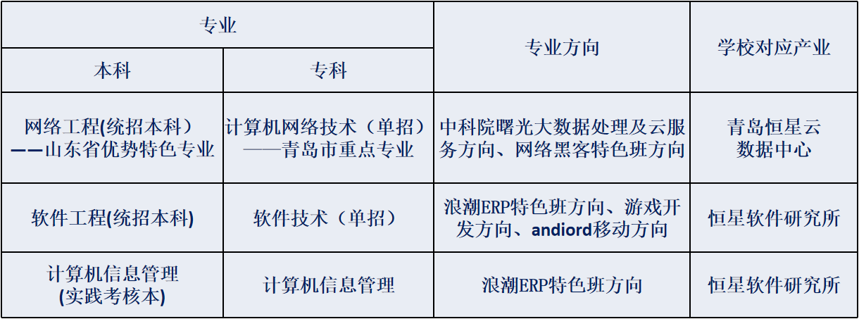 同时成立ERP工作室,让老师带着学生进行ERP相关软件的研发,包括现在恒星的教务管理软件体系,均是由我校师生开发研究。最终目标是要形成产业链,即集软件开发、服务及运维一系列工作,把信息学院建成山东省乃至全国校园版ERP的人才基地、研发基地与产业基地。