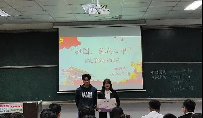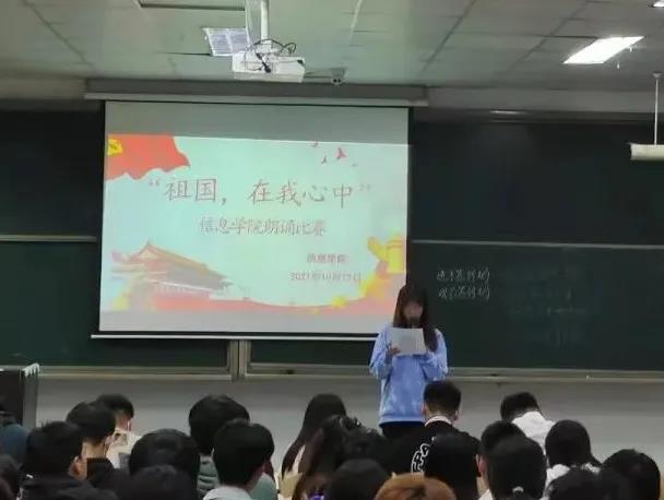 21级人工智能101班的官歆雅同学用温柔和缓的语调,讲述了一个不屈、坚毅、富强的祖国,现在的祖国经济飞速发展,人民安居乐业,勤劳智慧的中华儿女创造了举世瞩目的伟绩,神州飞天,百年奥运利我中华雄姿,目睹这一切的我无比自豪,只因我是中国人,我是中国的少年!
