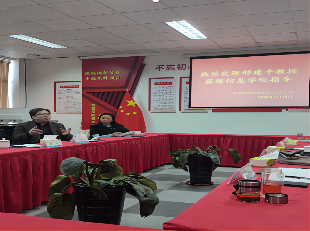 为对标国家级一流课程建设目标,探索学院教师能力发展途径,促进教与学的全面发展,全面提升学生和教师的创新实践能力,近日,信息学院特邀山东大学特聘教授、博士生导师邢建平教授一行来我院调研。校长助理蒋炜教授、信息学院李劲华院长参加了本次会议。