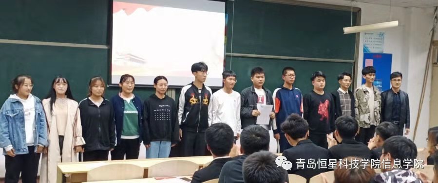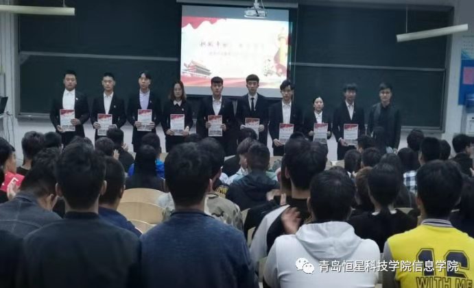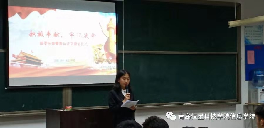 为进一步提高我院学生干部的综合素质、增强自我教育、自我管理、自我服务意识,在信息学院领导的关心和指导下,信息学院于10月11日晚八点在A4-304教室举办了班委任命暨青马证书发放仪式,出席本次大会的领导有:信息学院文宣主任管吉海主任、辅导员吴广荣老师、由艺老师。