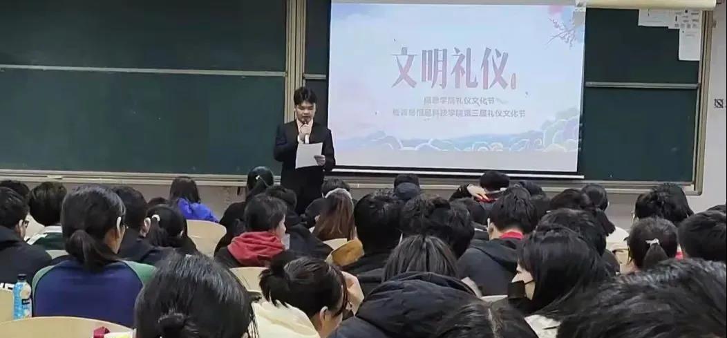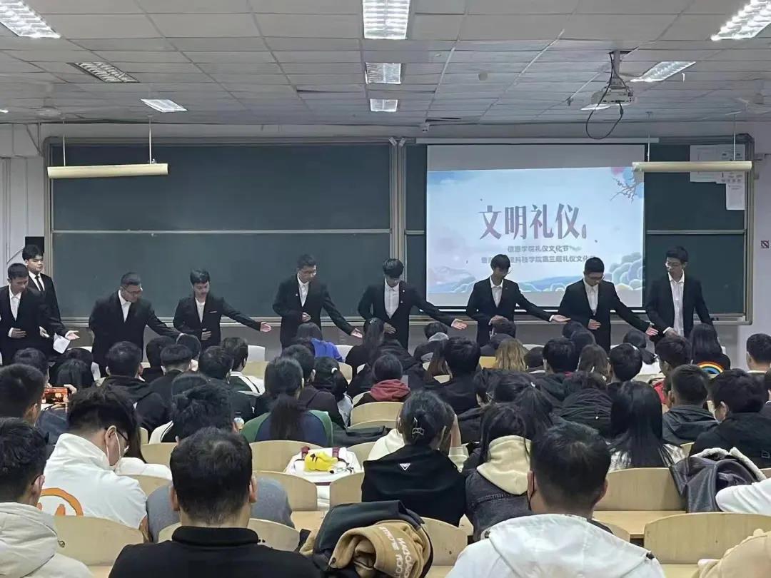 礼仪知识,运用礼仪规范,庆祝青岛恒星科技学院礼仪文化节,同时提高同学们的个人自信和气质,信息学院于11月18日下午19:00点在近思楼A4-506教室举办“文明礼仪”活动。
