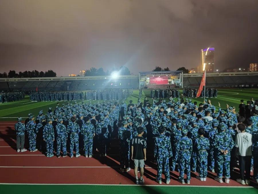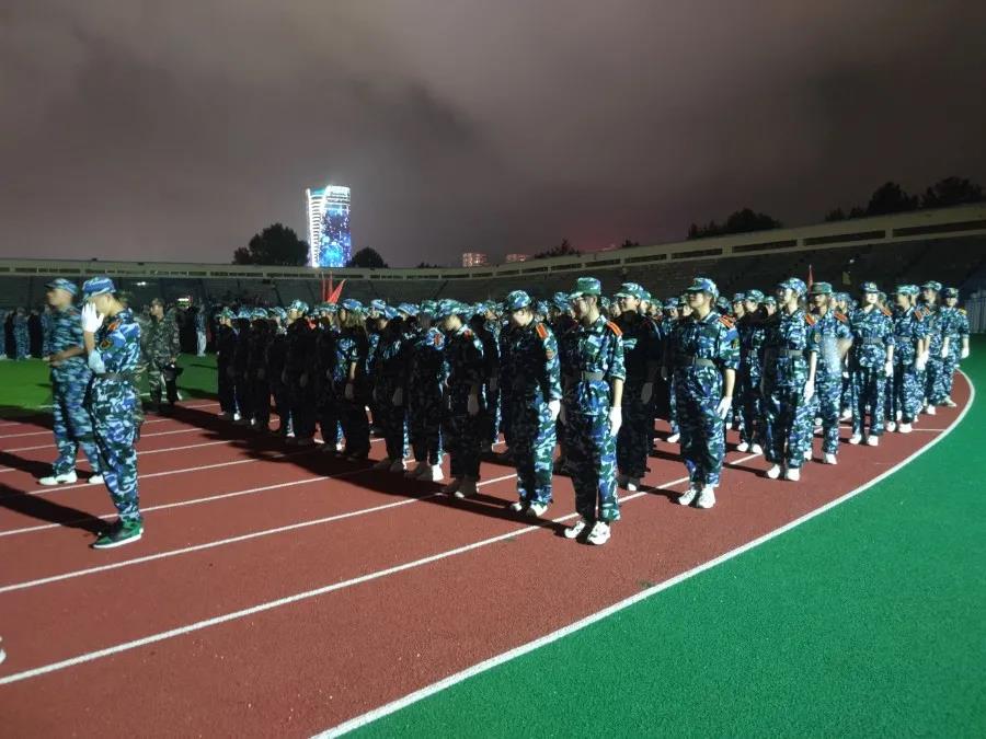 艰苦的训练虽是一种挑战,但他们不怕吃苦,不怕受累,与同伴们团结协作。晚间加训的主要内容是持枪作战。整齐划一的步伐,响彻行云的口号,如松般的军姿都是新生们青春蓬勃的写照。灯如星芒,闪耀夜空。即使在晚间,他们也没有半点的怠慢,认真训练。许多的同学克服了平日的惰性,忘却生活的优越,不断地充实丰富着自己。他们犹如战士一般,有一种纵横沙场的感觉。