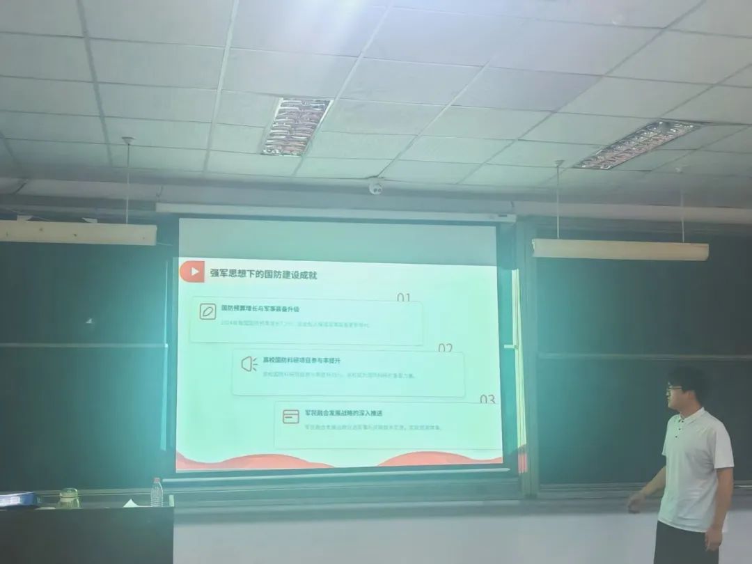 比赛过程中,选手们结合PPT内容,以多样视角诠释“爱我国防”的深刻内涵。有的选手以戍边英雄陈祥榕“清澈的爱,只为中国”的誓言为引,配合战士们在喀喇昆仑高原上巡逻的照片,哽咽讲述着那段热血守疆的故事;有的选手借助动态数据图表,回溯我国从“小米加步枪”到拥有航母战斗群、隐形战机的跨越历程,辅以卫星发射、舰艇下水的珍贵视频,将国防科技的崛起之路娓娓道来。