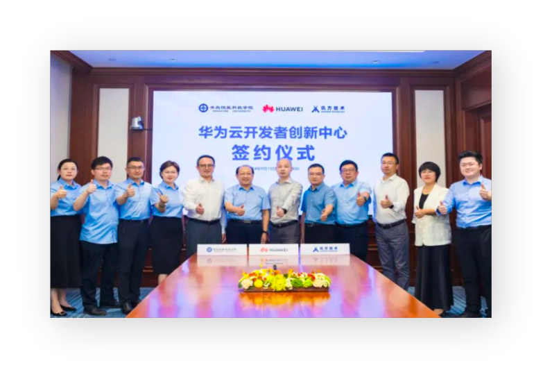 软件工程专业基于人才培养目标,深化产教融合,持续探索与行业和头部企业的合作。学院与华为云、深圳讯方技术在华为公司总部签署校企合作协议,共建“华为云开发者创新中心”。