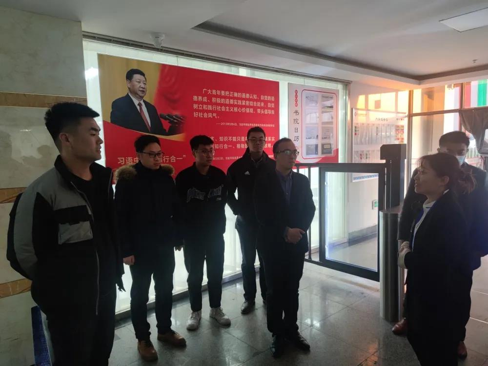 12月2日下午16:30,泰山科技学院副校长谢承红、大数据学院学生工作办公室主任刘睿智、第一书院社区综合办公室主任张天赐一行五人莅临我校参观交流,青岛恒星科技学院副校长王春娟、学生处处长毕晓丽、副处长房坤、团委书记隋立欣、信息学院副书记、知行学院执行院长左军、旅游学院副书记、红信书院执行院长尚园、书院管理中心书院导师管军陪同参观。