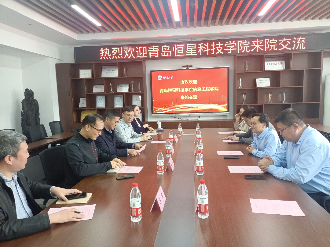 在山东财经大学,青岛恒星科技学院信息工程学院一行与计算机科学与技术学院院长韩慧健等座谈。双方同意加强在专业建设方面的合作,共同推动教学和科研的发展,提高教学质量和科研水平,就相关合作初步达成一致。山东财经大学计算机科学与技术学院副书记吕海霞、副院长张云峰、林培光、院长助理张锐、人工智能系系主任李防震等参加了座谈。