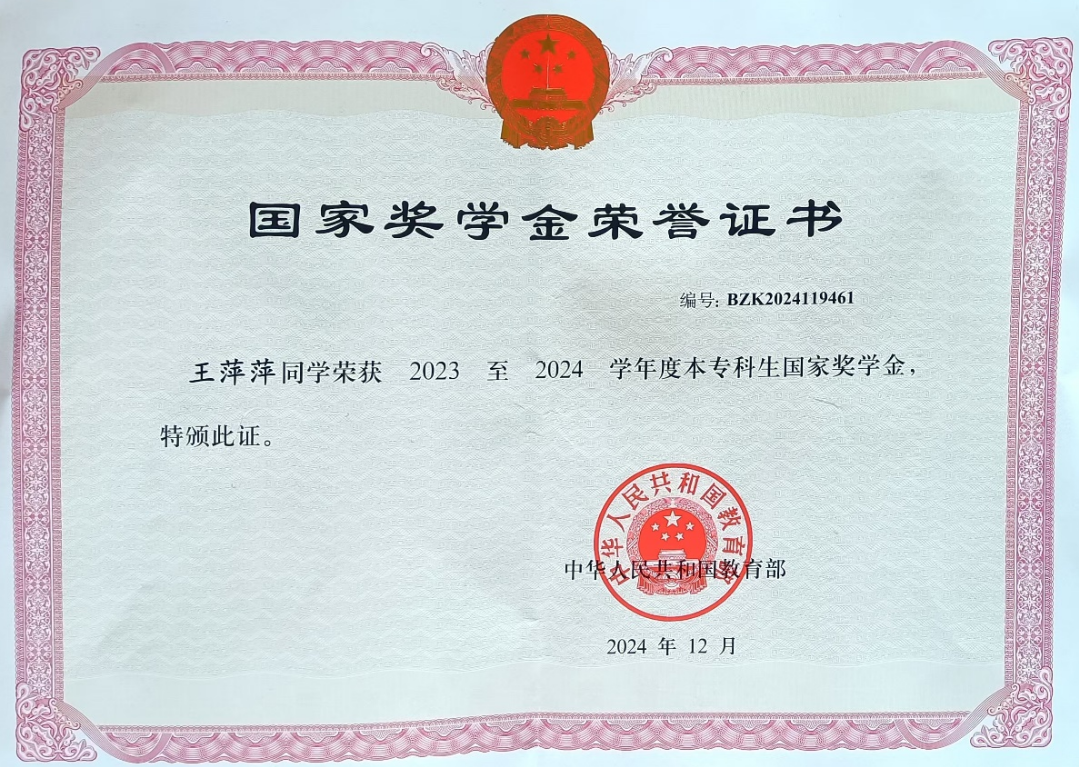 信息工程学院优秀学子风采|国家奖学金获得者——王萍萍