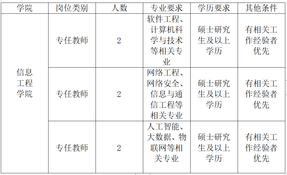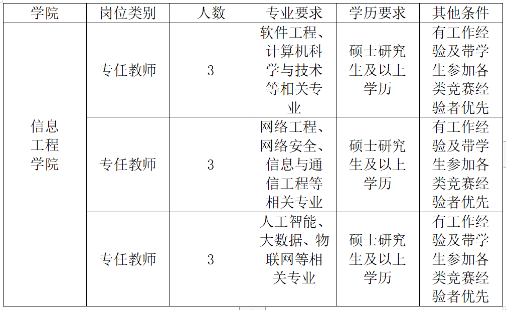 3.信息工程学院2024年度招聘计划(平度办学点)