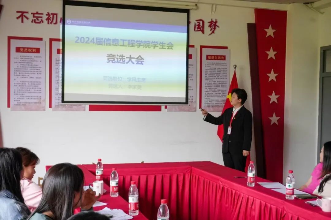 时光荏苒,岁月如梭。在上一届主席团带领下,各位学干为学院的各项工作做出贡献,给信息工程学院的同学们提供了丰富多彩的校园生活。回首过去,各位学生干部脚踏实地,上下求索;展望未来,他们依旧信心百倍,砥砺前行。5月17日下午14:00,信息工程学院于A4-305教室进行2024届学生组织主席团换届大会。