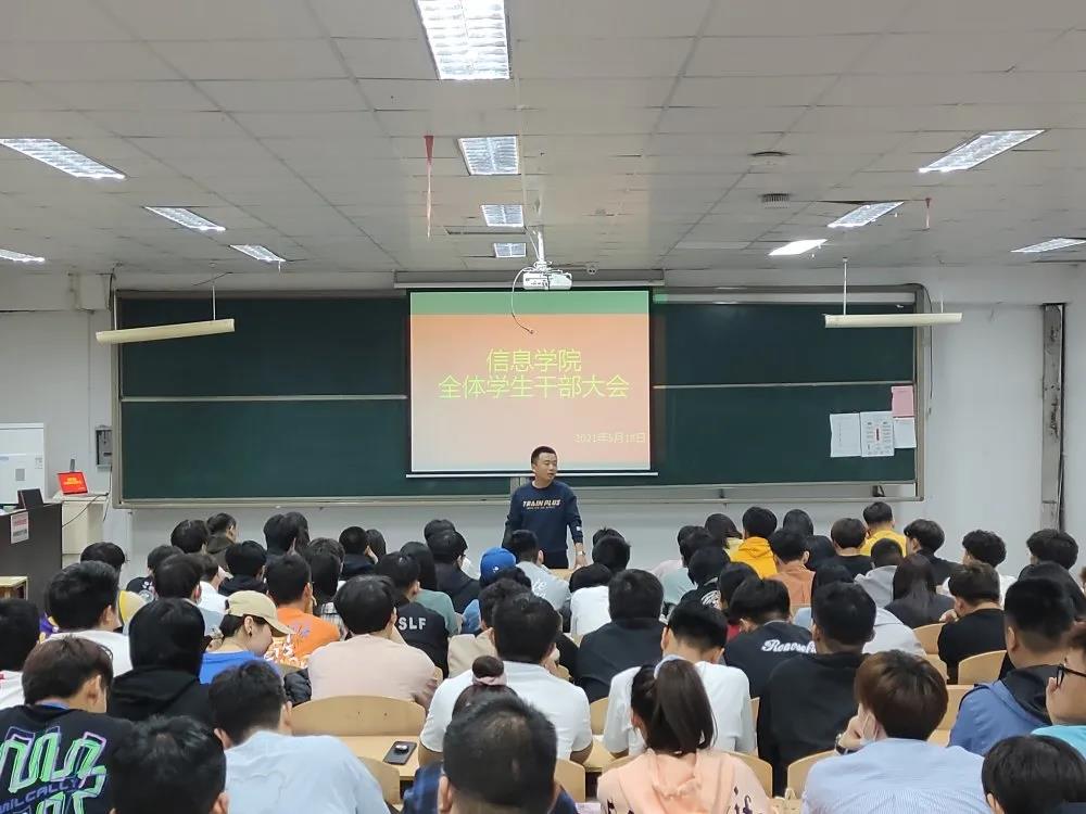 最后,左院长提到,社会实践活动是培养大学生创新精神和实践能力,提高学生综合素质的良好体现,实施素质教育的一种良好形式。社会实践是学生走向社会的一个重要的锻炼环节,也是教育与实践相结合的具体体现。大学生参加社会实践活动对德智体本身来说是课堂教育的延续,更有助于提高学生的动手和参与能力,所以我们应该积极鼓励学生参加社会实践活动。一个学校的校风校训很重要,左院长严格要求信息学院学生要背熟校训和办学理念,建设学风管理制度,并在此基础上加强学风管理建设。