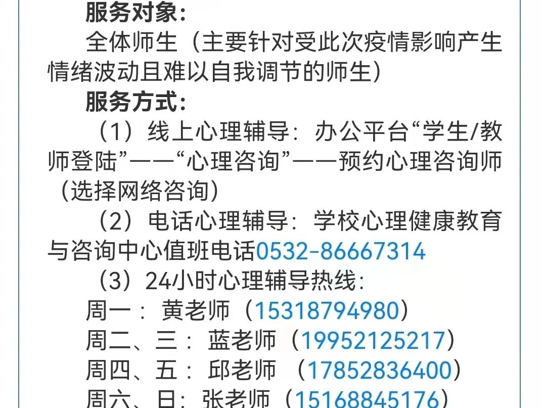 行为改变法主要针对消极心理状态。它主要是指强化法、行为塑造法、示范法、处罚法和自我控制法。具体来讲:如果需要进行心理调适,首先就需要改变自己的行为。心理咨询渠道 面对这一严峻形势,学校心理健康教育与咨询中心在校疫情防控指挥部的领导和支持下,为了更好地帮助老师、学生在此期间产生的心理困扰,即日起为全校师生开通线上和电话心理辅导专项服务。